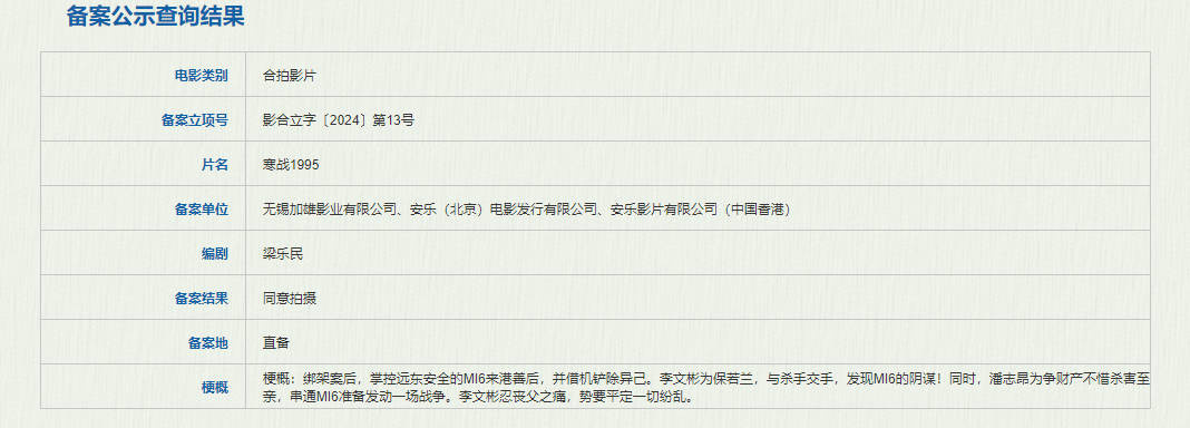 据悉,《寒战1994》《寒战1995》已于2024年同时备案立项。